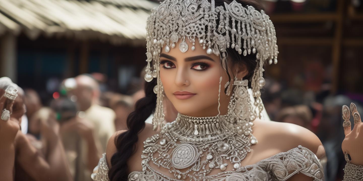 这位新娘的银饰,从头到脚,从耳环、项链、手镯到脚镯,无一不是银质制品。她的头饰由银梳、银簪、银链等组成,项链则由数十个银圈串联而成,手镯和脚镯更是多达数十对。这些银饰在阳光下闪耀着迷人的光芒,让人不禁为之赞叹。